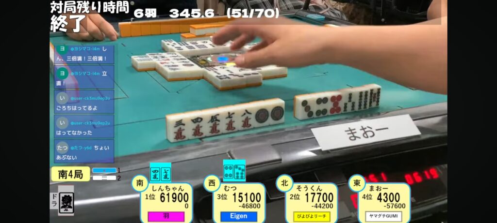 ただ、非情にも羽しんちゃんのダマテンに敗れ和了れず。