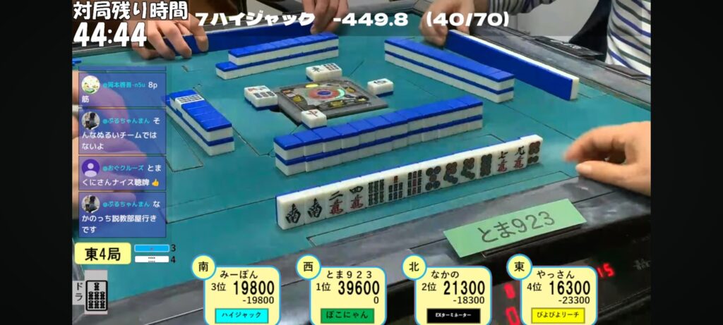 1.2戦連闘となりましたとま923選手ですが、魅せる麻雀とはこの事でした!