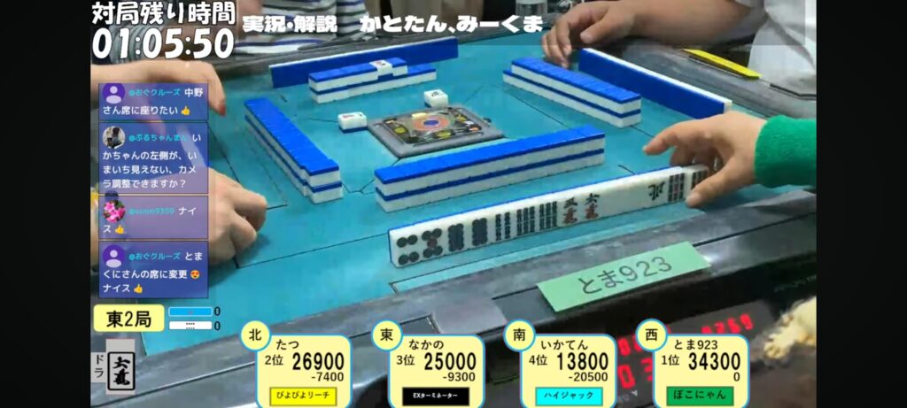 昨日はお疲れさまでした😊あんないい配牌が何度も来たら、ほんとに麻雀楽しいだろうなぁという感じでしたね😆でもいかちゃんみたいに最高の配牌でも上がれないと悲しいですね😢