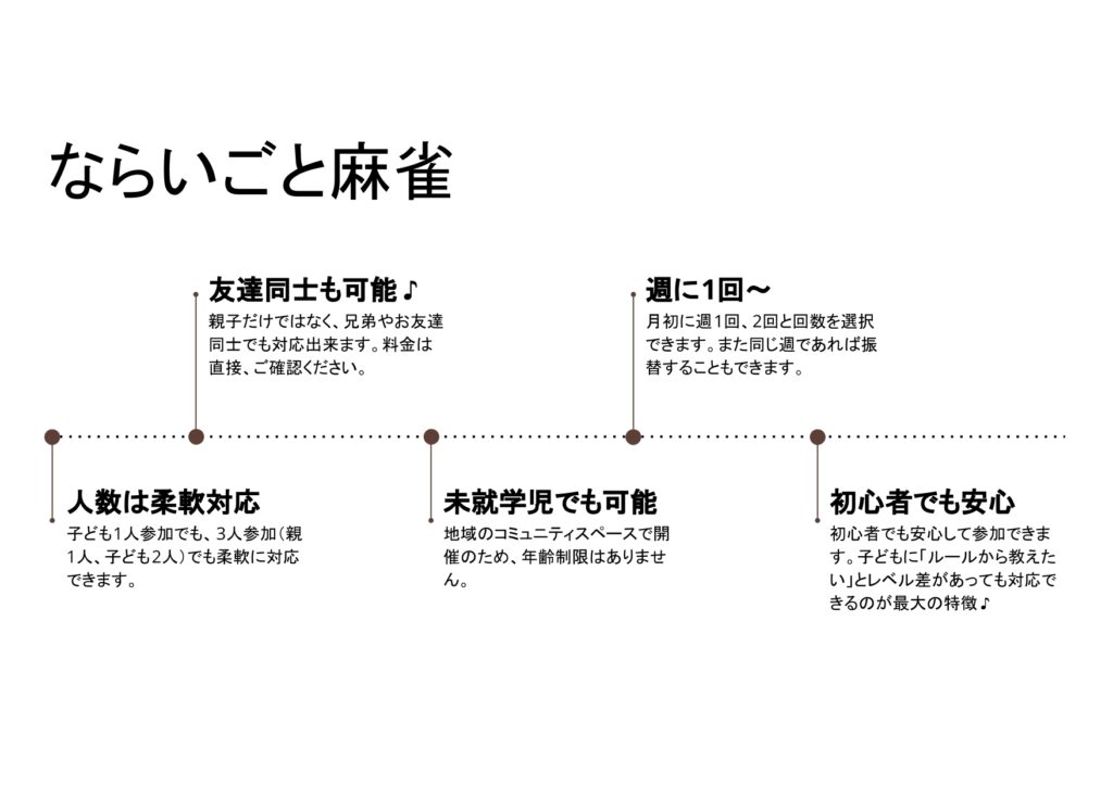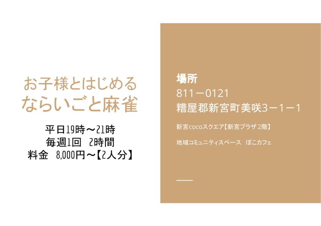 7年前にプロスポーツ化されて以来急速に頭脳ゲームとして大注目されている麻雀をならいごとにしてみませんか??