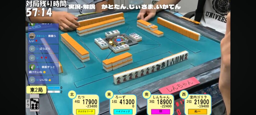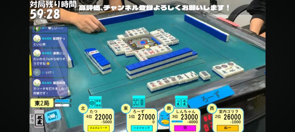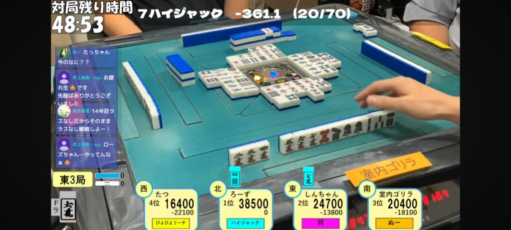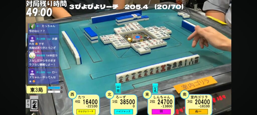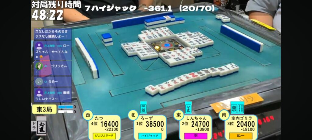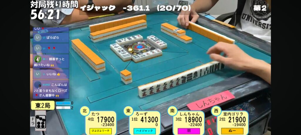 4着はぬーの室内ゴリラ選手。しっかりと失点を防ぎ、良い進行でしたが21000点代のラスはしょうがないといった感じですかね😭