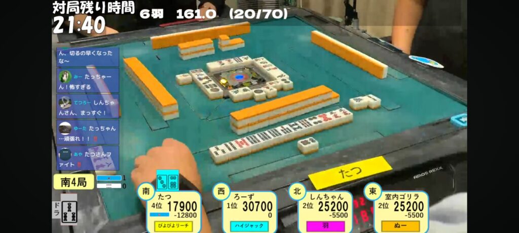 結果的に親で4000オール和了、最小限の失点のハイジャックろーず選手が逃げ切りましたね!苦しいチームとしては嬉しいトップとなりました!