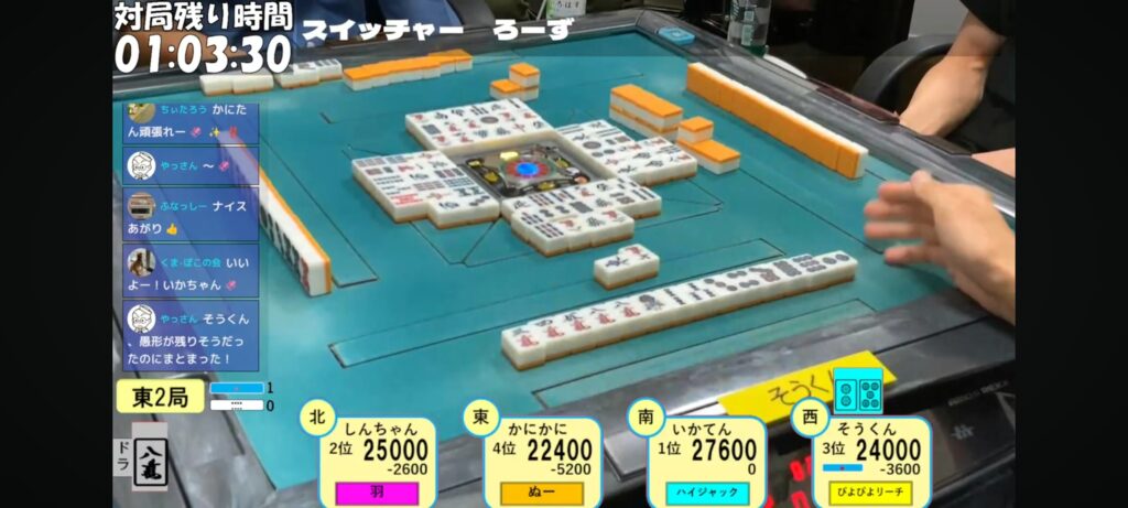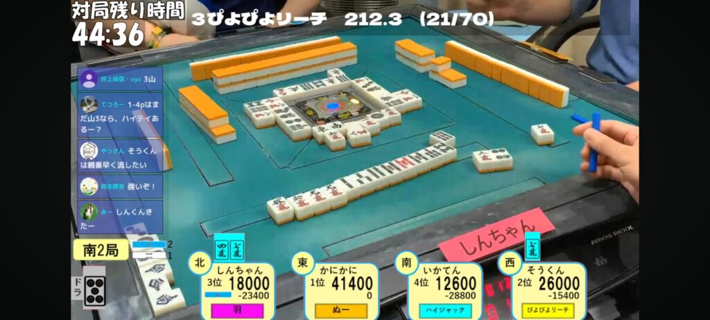 3着はぴよぴよリーチのそうくん選手!満貫ツモ和了があり抜け出しましたが、その後は厳しい展開でしたね。